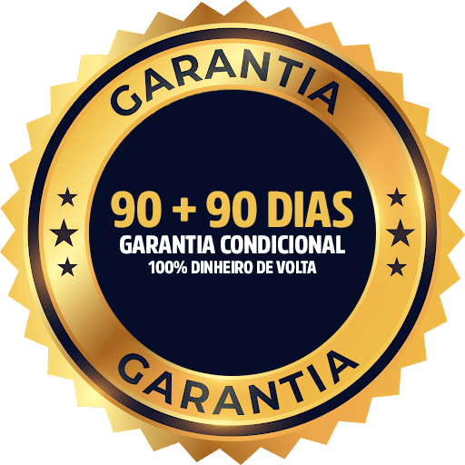 Além de 7 dias de garantia incondicional, você tem 90 dias de garantia para aplicar o método completo. Se fizer tudo direitinho e não alcançar resultado, você ganha uma consultoria exclusiva comigo para ajustar o que for necessário.